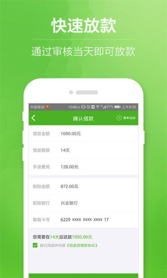 3.快速贷款:批准后,快速贷款,您将立即收到贷款;